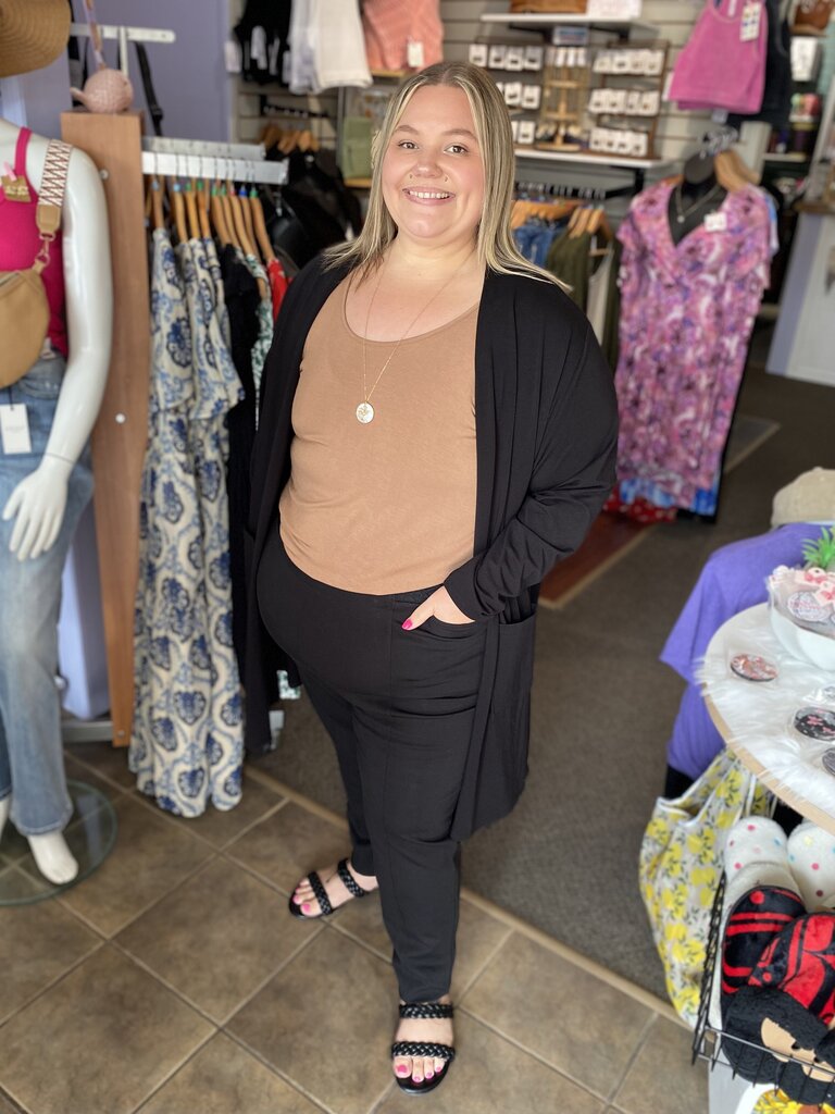 Nadia Pants look tailored, but offer freedom and ease of movement. Tree based Modal gives the pant structure, while the long narrow silhouette offers the wearer a sleek look that fits any wardrobe. Features two hidden front pockets that fit your phone. One of the top-sellers, the Nadia Pant is available in several colours, Regular and Tall lengths. Features - Stretchy waistband - Two hidden, front pockets - Front and back seam Fabric - 95% natural, breathable Modal 5% Lycra