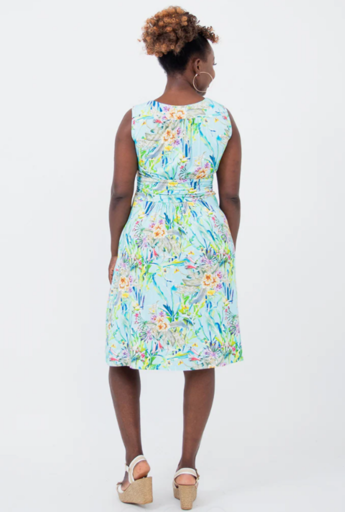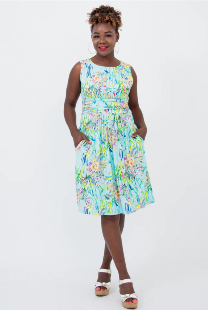 The Roam dress a flattering style that will accentuate your curves. It features a ruched bodice, fitted waistband and pockets. Fabric - 95% Bamboo, 5% Lycra