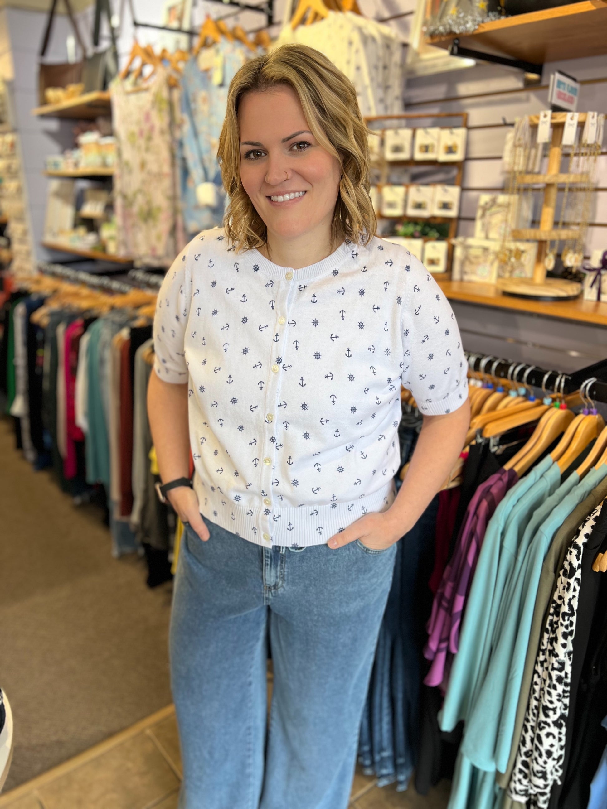 Fabric: 100% Cotton Our Shen Cardigan features a round ribbed neckline, short sleeves with ribbed cuffs, and a ribbed hemline. It sits right at the hips and is made from soft, breathable cotton to keep you comfortable all day long.